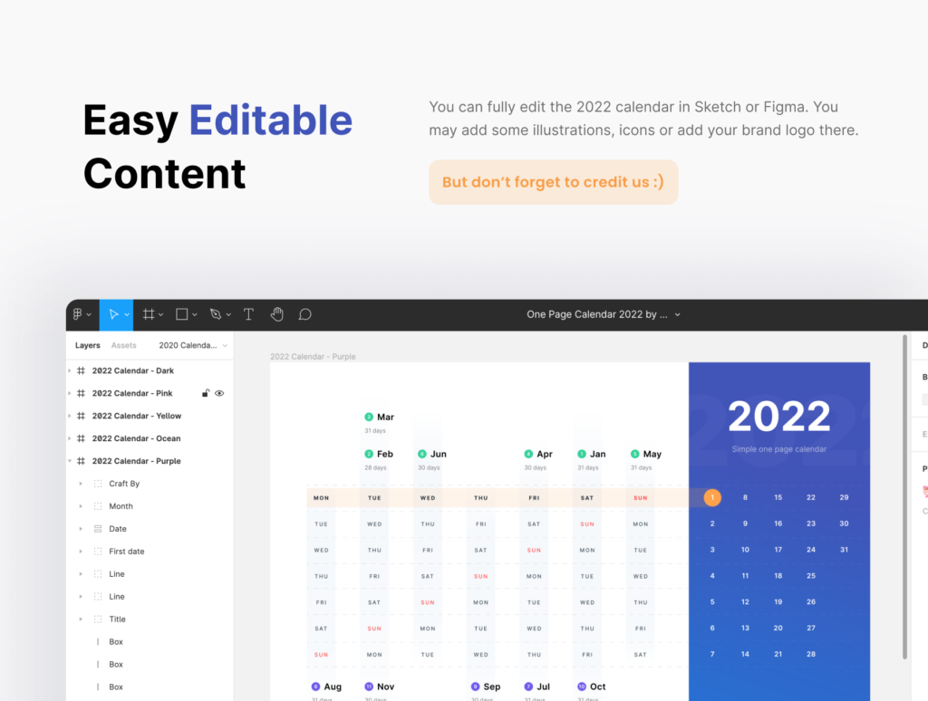 One Page Calendar 2022 for All in Figma, Sketch, SVG, PDF, PNG, and EPS format