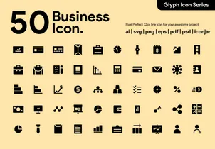 50 Business Glyph Icon 32 x 32 pixel perfect design