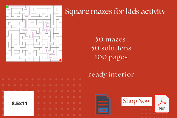 Square Maze Kids Activity KDP interior for your low content or no content book.