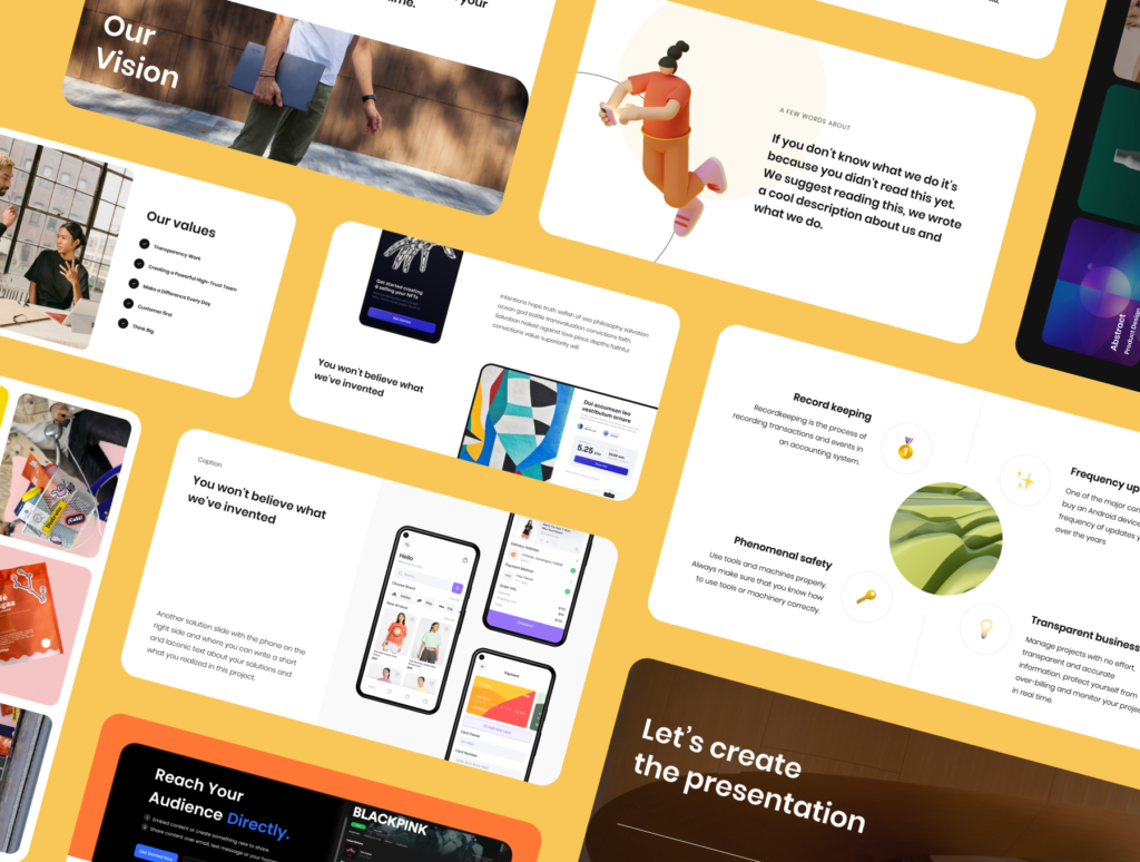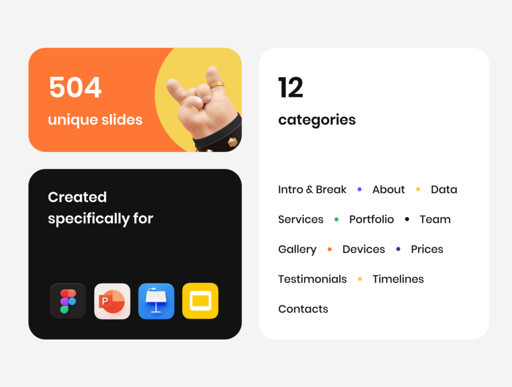 Create your next presentation faster using 500+ clean and joyful slides crafted especially for PowerPoint, Keynote, Google Slides, and Figma. 💻 Perfect for resume, portfolio, pack case, business things, tell about the project, and else. Customize everything and make your presentation unique and unforgettable. ✏️🤩