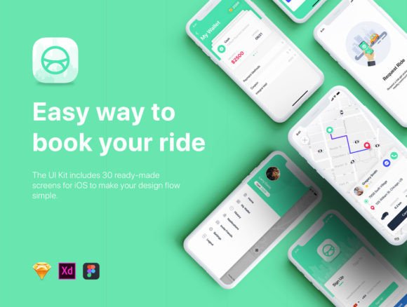 Aber UI Kit is a full-featured mobile UI Kit for getting started with taxi apps like Uber applications. It also includes 30 ready-made screens for iOS to make your design flow simple. All elements are well-organized and sorted by folders so that you can quickly edit and customize your screen in the smartest way possible. It includes both Sketch, Adobe XD & Figma versions.