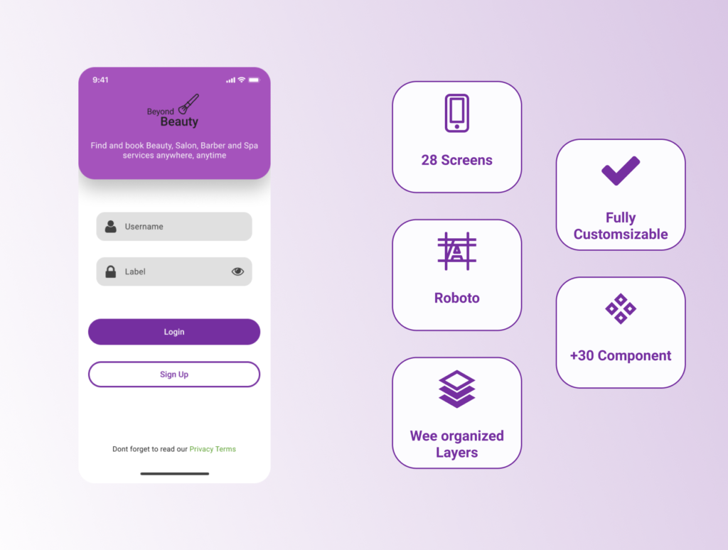 Beyond Beauty is a Salon and beauty industry app platform for all people around the world. i tried to design it so easy to use and Customizable. all layers are named and organized. Free icons and font used. All posters and Pretension images are available in kit . Trying to make your workflow as efficient as possible.