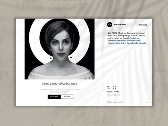 This Instagram Post and Story Templates set contain 60 Templates – 30 IG Post templates and 30 IG Matching Story Templates. This Social Media Bundle features real content about branding, is ready to use, and can be customized using Canva for FREE!