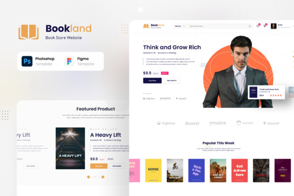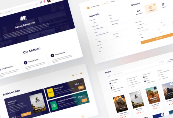 Modern website User Interface design template for a Book Store eCommerce. This template is ideal for online book store, bookshop, book eCommerce, and any eCommerce website. Make your website design looks stunning and eye-catching using this template. This template includes 10 unique and modern User Interface screens in PSD and Figma format. You can easily edit and customize using Adobe Photoshop and Figma.