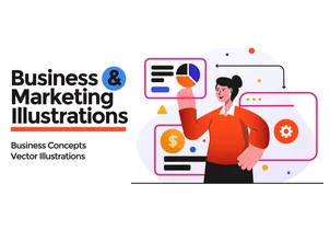 Business and Marketing Illustration is a High-Quality and Customable Illustrations Library. This marketing set Illustration, can be used for onboarding mobile apps, web landing pages, banners, posters. vector-illustration, business presentation and many more. All illustrations are 100% customizable and are created using vector shapes. You can change color and size to match your requirement. *Concepts are easy to edit, customize and resize, because of vector shapes and very well organized layers.* **Included Files:** – 2 AI Cc: (Vector-Fully Text Editable) – 2 EPS 10: (Vector – Openable with many vector based graphic programs such as Illustrator, CorelDraw) – 2 JPG- High Resolution – 2 PDF – 18 SVG