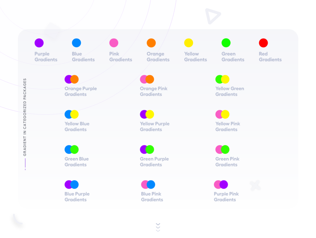 Color gradients, or color transitions, are defined as a gradual blending from one color to another. This blending can occur between colors of the same tone, colors of two different tones, or even between more than two colors!