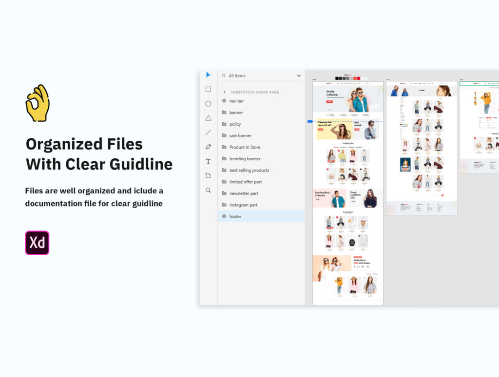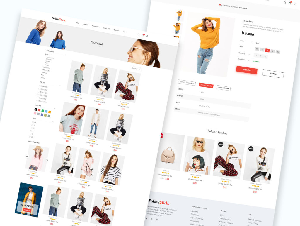 FabbyStitch is a Fashion & Clothing ecommerce Website, is clean, modern and professional. You can also use it for multipurpose ecommerce website. This website can be easily conversion into HTML, Wordpress, Magento, Woocommerce, Shopify, Joomla and other platform also. XD files are well organized and named accordingly so its very easy to customize and update.