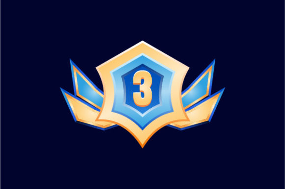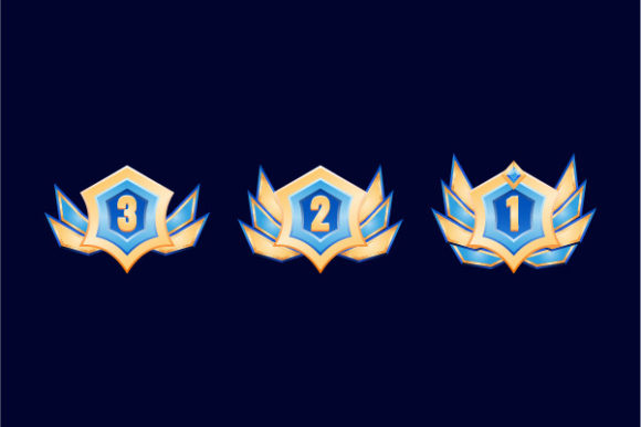 vector game asset of fantasy premium glossy golden diamond rank badge medal with grade from 1 to 3, higher to lower. perfect for your game ui asset design.