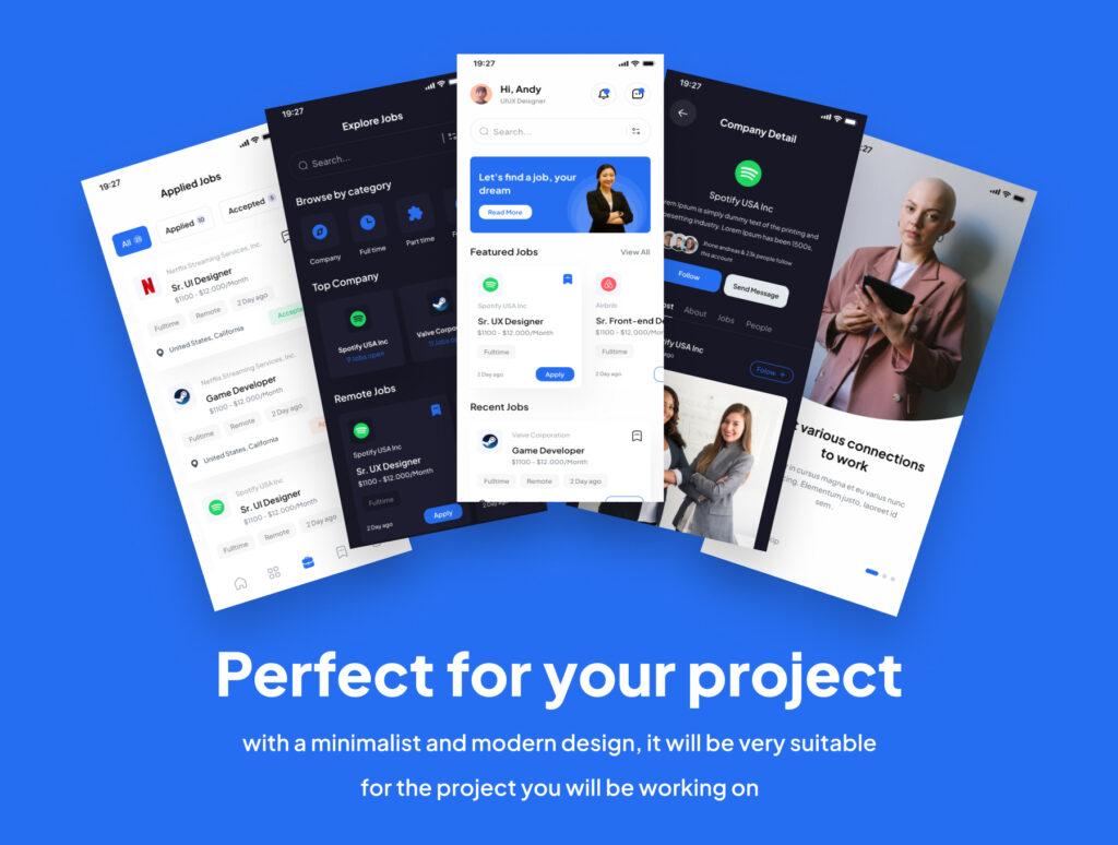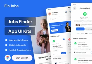 Fin Jobs a Minimaslist design UI Kits for Jobs Finder App with 100+ screens.