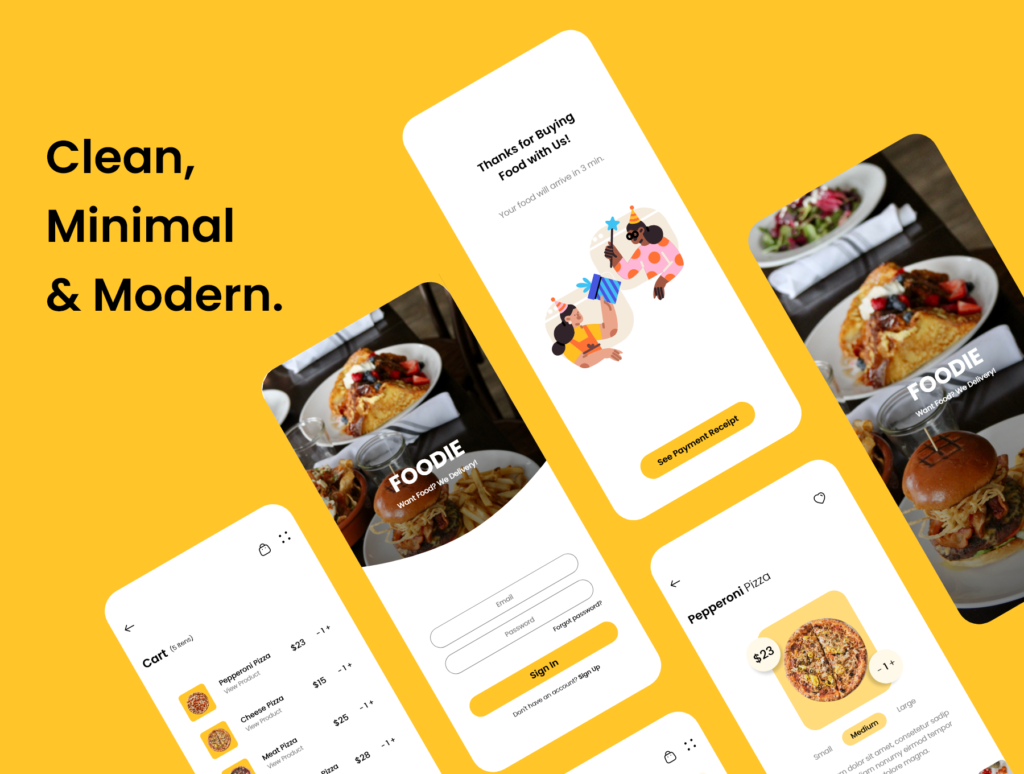 Hi Foodiie UI Kit is a food app delivery. This High Quality UI Kit pack contains 30 UI screens which will help you develop an amazing app. We hope you enjoy using it!