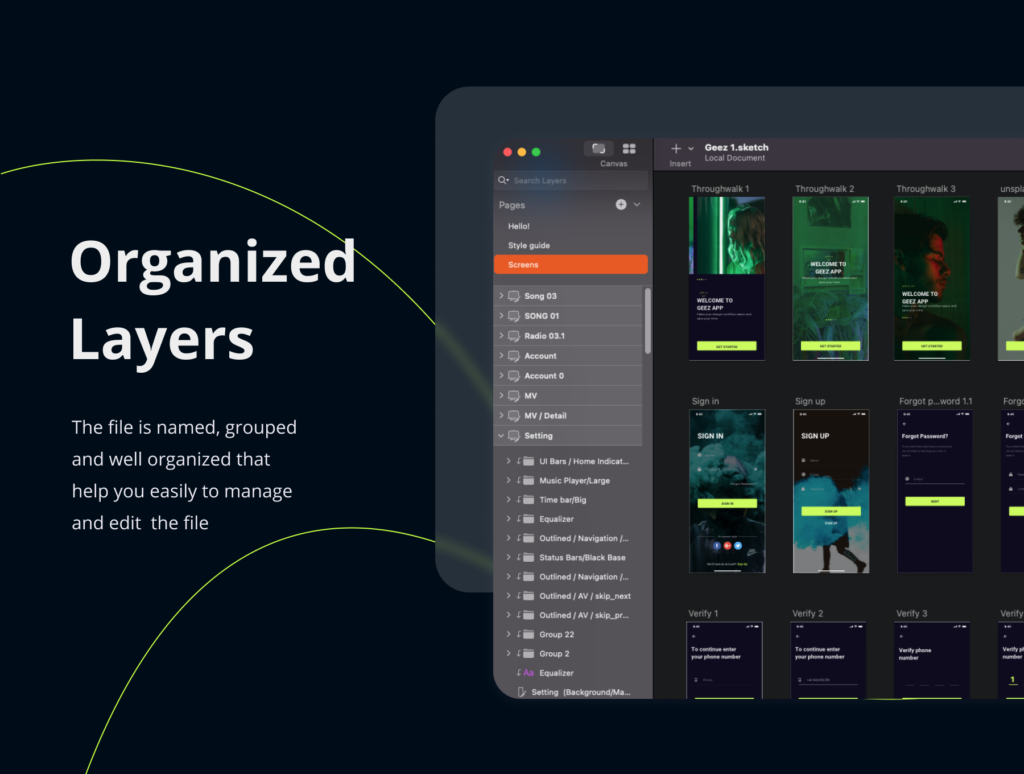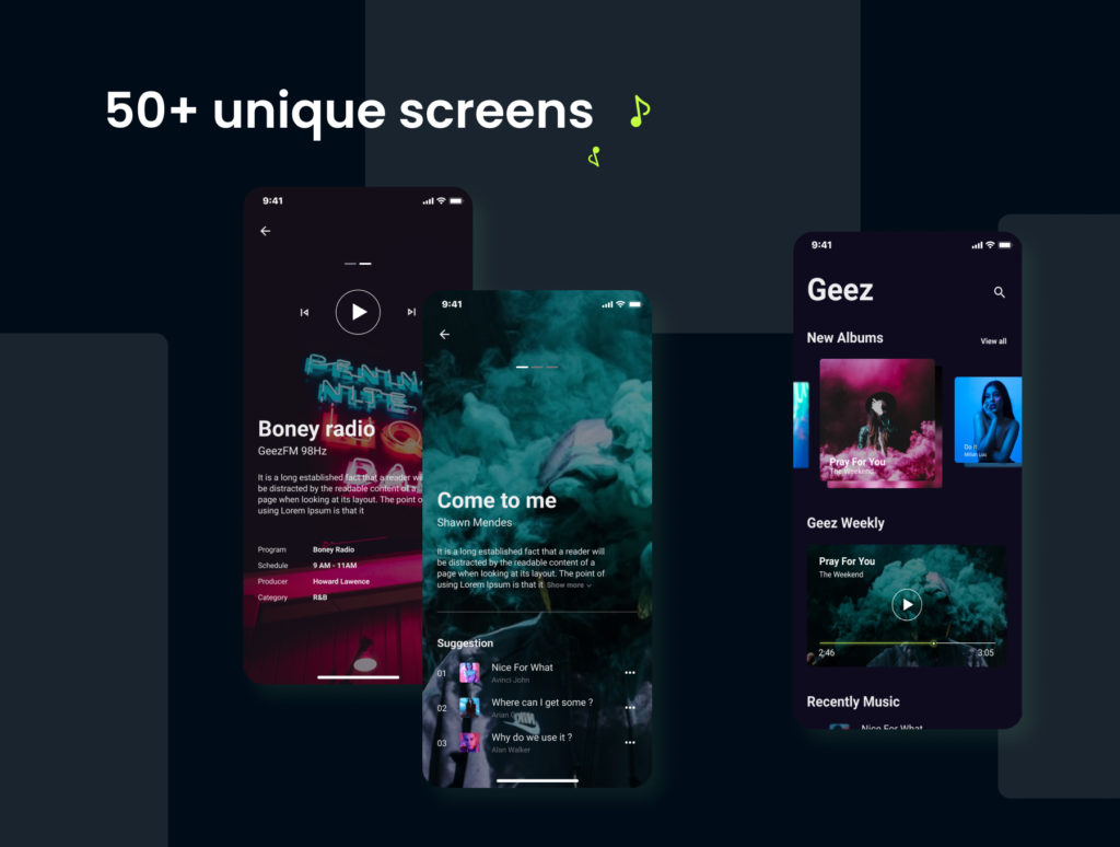 Geezo is a music kit with the best interface designs. Color is a special attraction that expresses personality and modernity. Package includes 50+ music screens and works in Sketch, Figma & XD. You can completely edit the components easily.