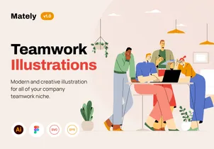 Mately is a pack of custom illustrations suitable for any Teamwork niche. Perfect for UI/UX design, presentation, advertising, and many more.