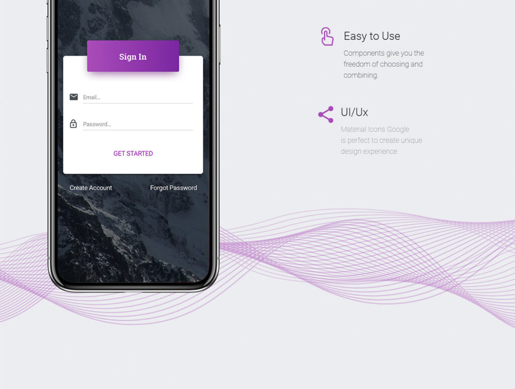Mobile Material Design features over 100 individual components, giving you the freedom of choosing and combining. This means that there are many opportunities of combinations. All components can take variations in color, that you can easily modify using Sketch files.