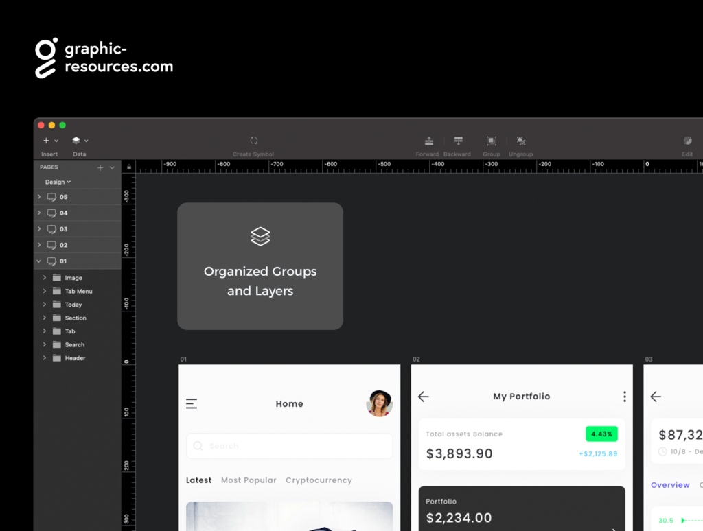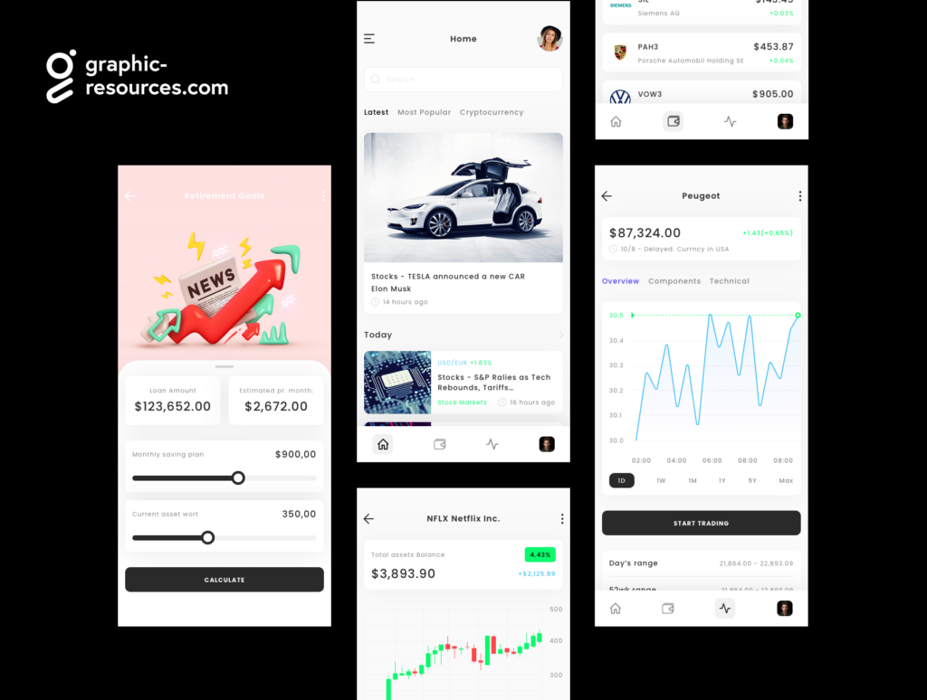 A mobile finance & trading app UI Kit for Figma, XD, Photoshop and Sketch.