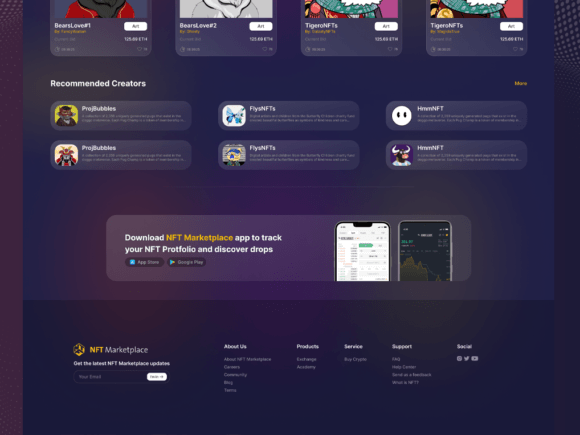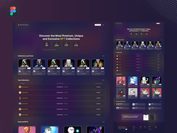 NFT Marketplace website template created with Figma design system. You can edit the components of the design easily. Customizable template to fit your own NFT Marketplace elements. You can easily pick your own colors and dimensions that fit your business need.