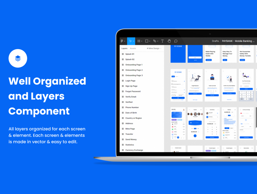 Paybank – is a modern, clean and very detailed UI kit for iOS & android. You can use this app template to trade your bank, mobile banking, wallet mobile app, crypto wallets or any financial projects. We designed more than 30+ beautiful unique screens for your mobile app. All symbols and objects are vector based and easily editable. We create versions for not only sketch file also Figma, Adobe XD and Sketch file, so it’s really easy to editable. Easy to use and screens is ready to use for iOS & Android app. You can easily change any design. It’s easy to customize and also well documented.