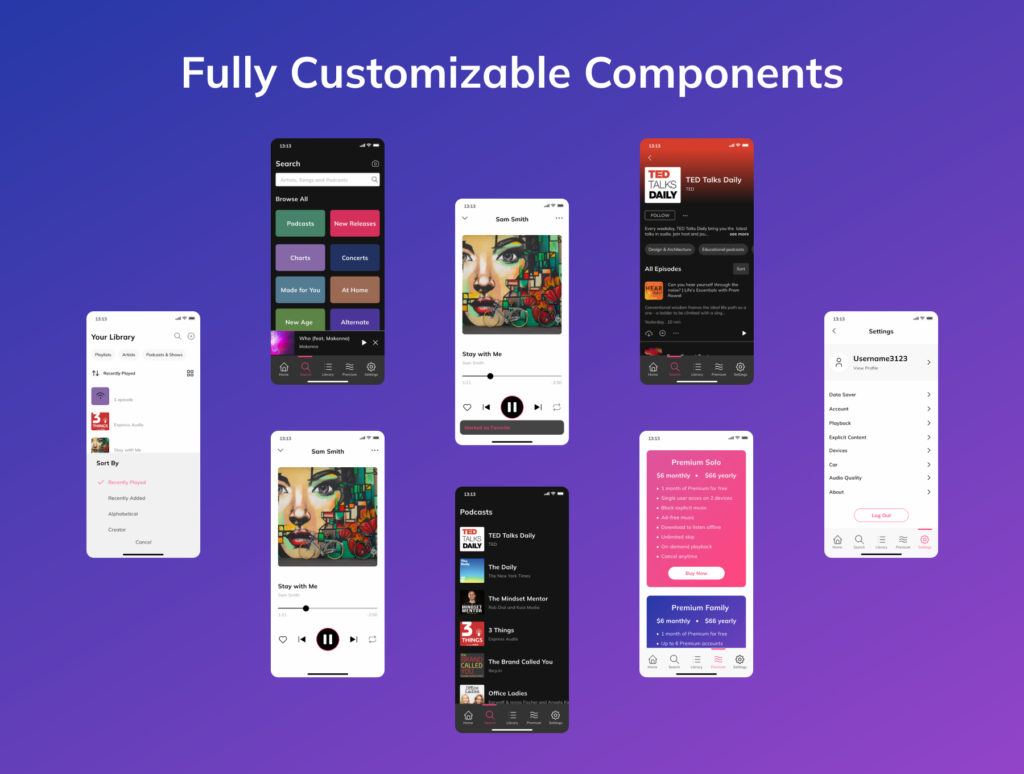 My Rhythm is a Premium and High-Quality Music App UI Kit with 25 high-quality screens in both Dark and Light Modes. In total there are 50 screens.