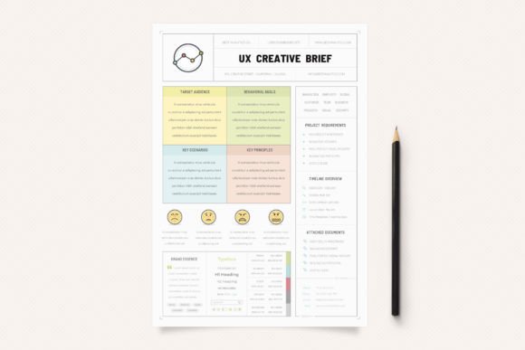The document also honors its name in terms of Brief. Adding every possible piece of project info would only ensure that important data will be forgotten in a moment. Using visual infographic concepts ensures that just important info is in, being easier to scan, understand and remember.