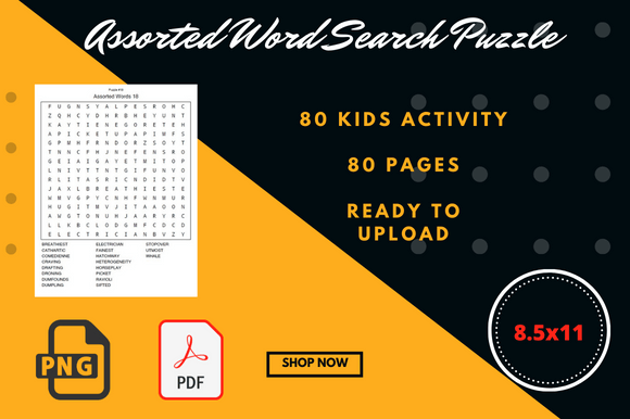 This is a template of Kids Word Search Puzzle Book for KDP low contents or no contents book. You can upload it to Amazon Kindle Direct Publishing.